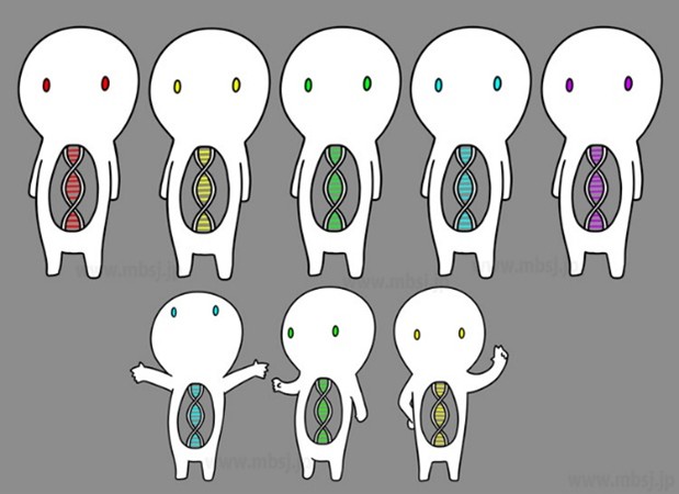 2014年に行われた本学会の公式キャラクターデザイン公募の応募総数は、259点に及びました。多くの作品の中から、学会員やSSH(スーパーサイエンスハイスクール)生徒研究発表会に参加していた高校生の投票により、『ブンピー』と『ニラセン』の2作品が選ばれました。分子生物学の魅力や学会の事業を伝えるため、グッズや学会ホームページなどで活躍してくれています。