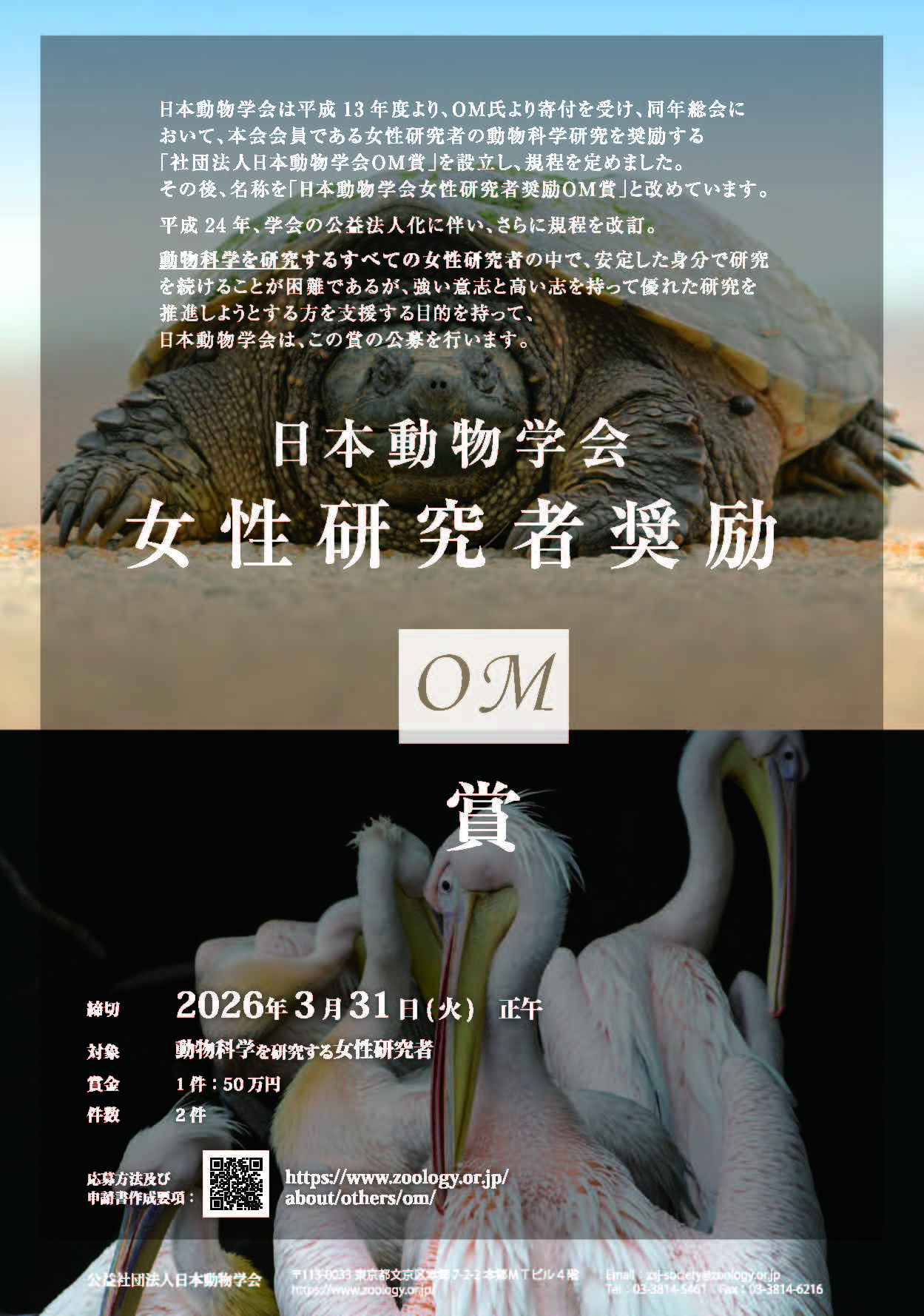 2026年度 日本動物学会女性研究者奨励OM賞、動物学教育賞のご案内